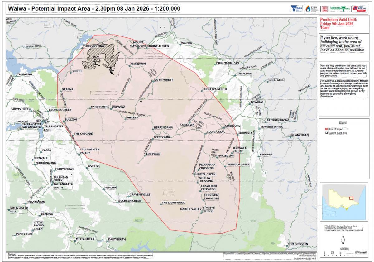 Communities that could be impacted by this fire include: Burrowye, Granya, Bullioh, Shelley, Lucyvale, Cudgewa and Colac Colac.